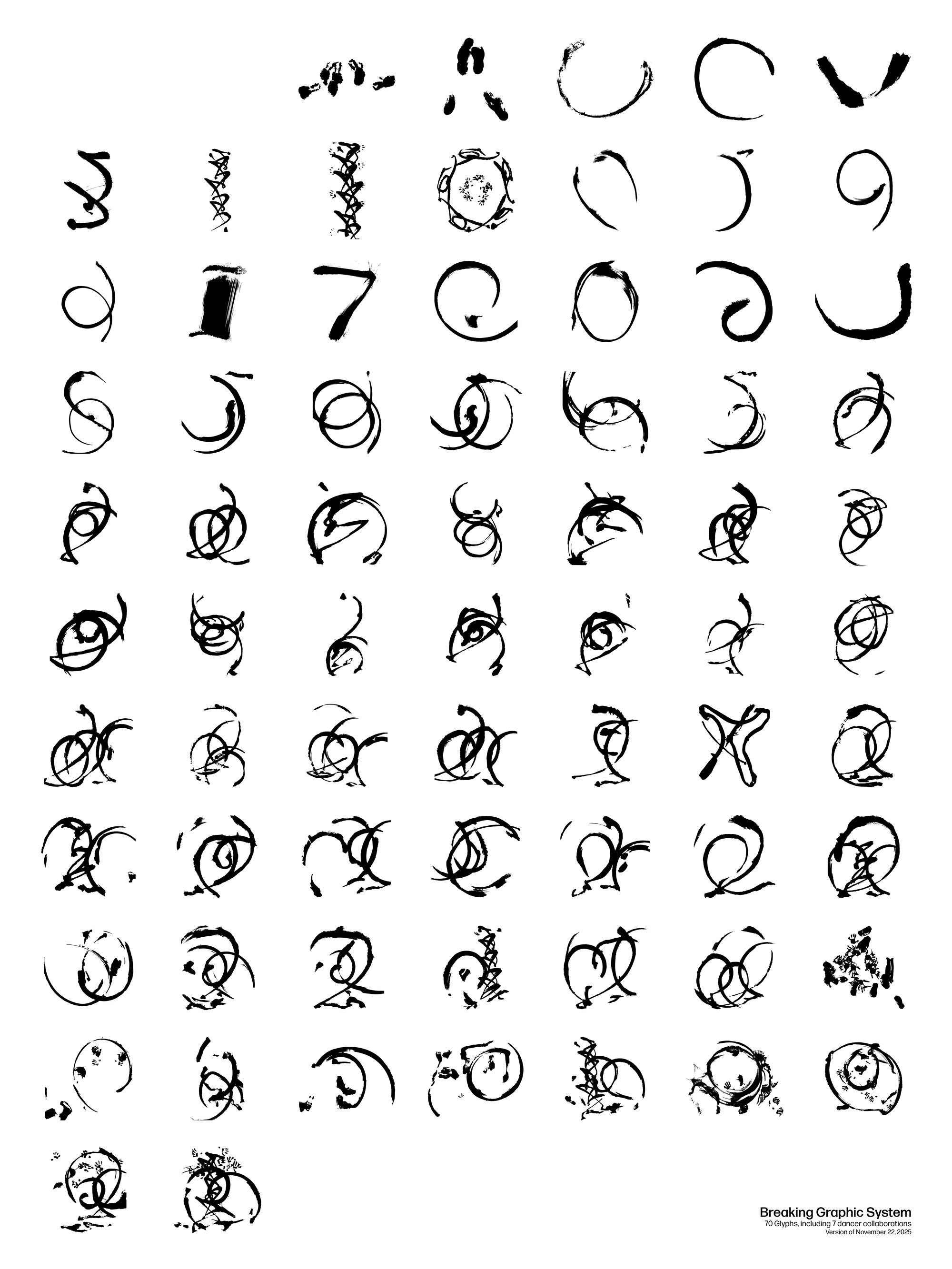 Currently: Version of November 22, 2025 - 70 Glyphs, including 7 dancer collaborations